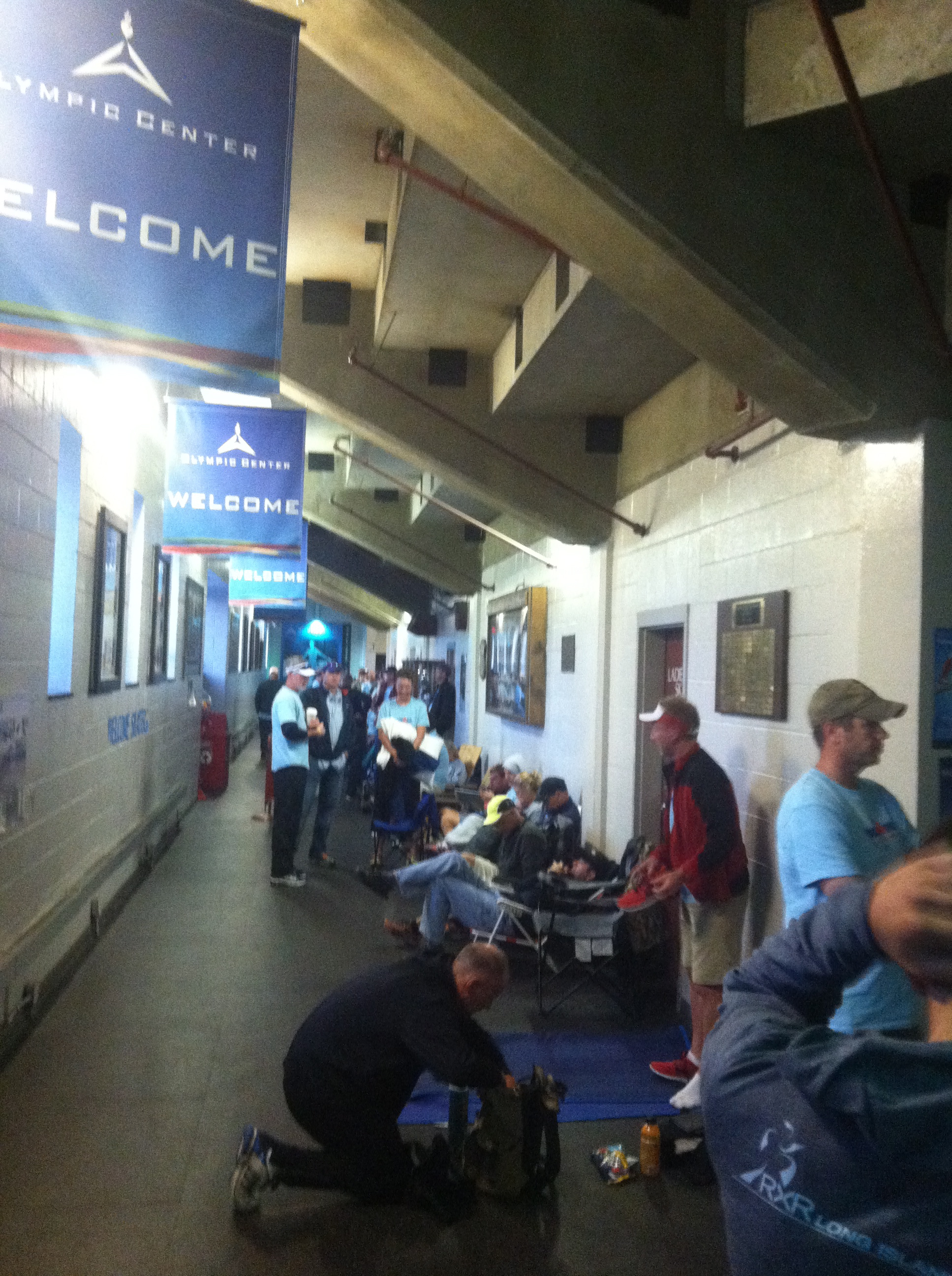 We laughed and then chatted the hours away. We got a kick out of the fact that not only did the Olympic Center open the cafeteria for us at 4:30 a.m. but sent a young man out to take orders from the line. How cool is that?