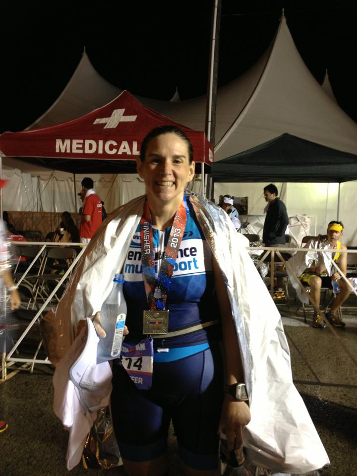 One great thing about my position in bike handling was I got to see all the top finishers including some of the really fast folks from Endurance Multisport including Cynthia Bartus and hubby Steve Thompson. I also got to see friends come off the bike and into transition including Jen. The finish line at an Ironman is awesome! With music blaring and Mike Reilly calling out names and declaring people as an Ironman it almost makes you want to try it. But that would be crazy.