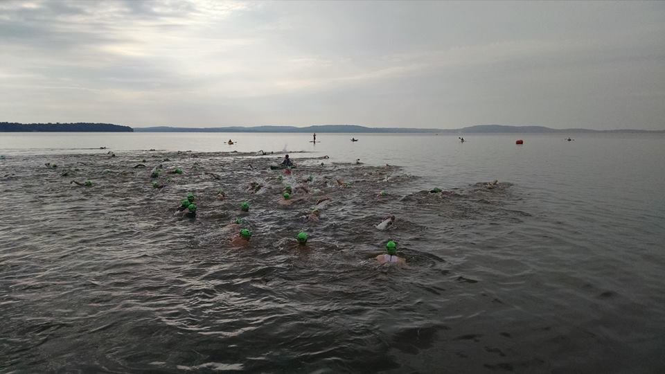 gave us a quick course description for the swim. “See that yellow buoy waaayyyy out there? Swim to that. Then turn and swim to that next yellow buoy waaayyyyy over there”. Okay Neil. It probably isn’t necessary to emphasize how far away the buoys are. Some of us have pretty fragile swim confidence and are perfectly willing to just go waaaaayyy over there to the parking lot and go home.