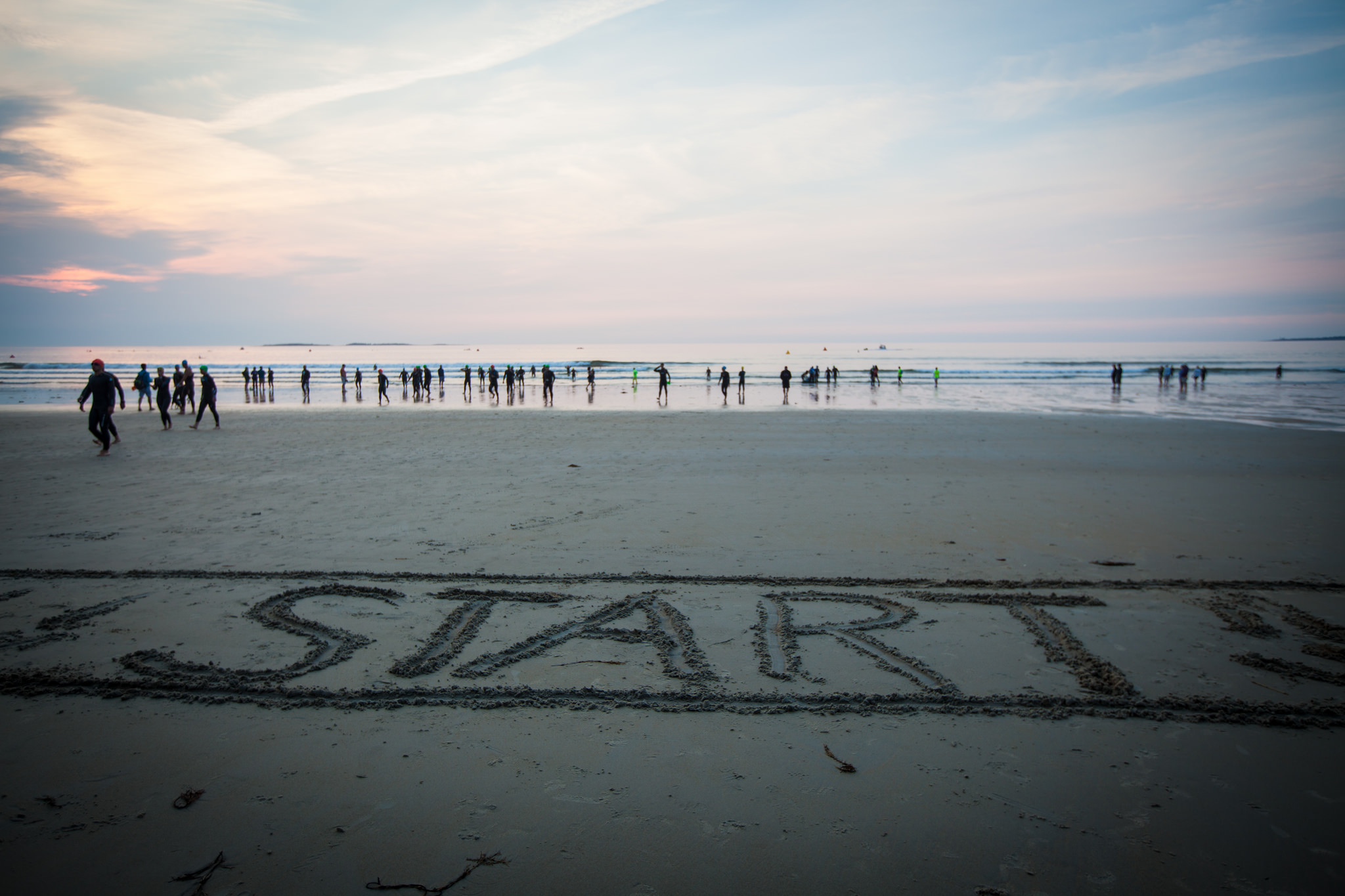 “Where’s the water”? This was my thought as I crested the dunes and first viewed the ocean swim start for the 2015 Challenge Maine 70.3 race. It was a beautiful early-fall morning with the first beams of daylight cresting the Eastern horizon and the large, full moon still hanging in the air. That full moon had sucked the big Maine low tide of Saco Bay even farther into the depths of the Atlantic than normal. It looked like you could almost wade to the Olympic distance turn buoy. This was a far cry from 2013 when it was high tide and the 70.3 buoy appeared as a distant spot on the horizon.