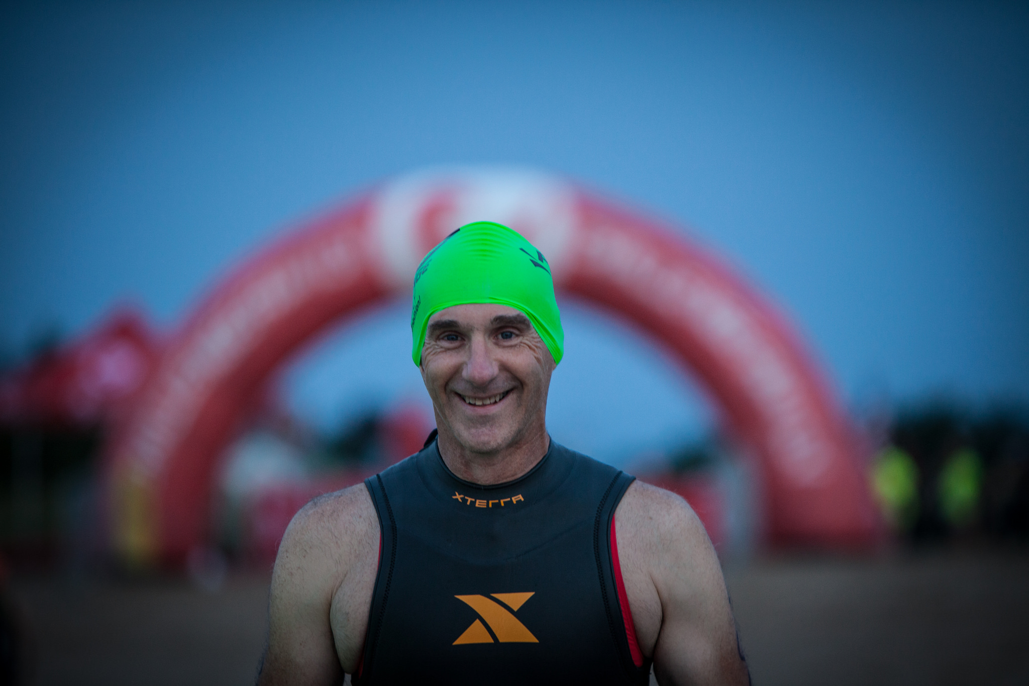 There was a big cliff just through the start banner at the high tide line. Rather then have athletes trying to run down the cliff, Race Director Mark Harris had created, as he put it, “an eco friendly start area”. Basically they drew a big START box in the sand.