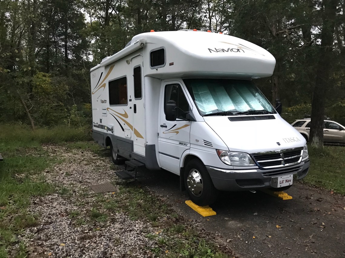 Lil’ Nav, as he came to be known, came home in late February 2007 and spent the rest of the cold, snowy winter in our driveway. I spent cold winter nights studying the owners manuals. Weeks passed and finally in late March, a beautiful Saturday arrived. Janice had to work Saturday morning but as the weather warmed, I began to learn about the water system of our little RV. I had the anti-freeze drained and the water system sanitized in no time. I had also flipped on the refrigerator early that morning. Lil’ Nav and I were ready to camp so when Janice came home we threw some clothes and food on board and drove the fifteen minutes to French Creek State Park. It wasn’t far but it is a pretty park and a great spot for our shakedown cruise.
