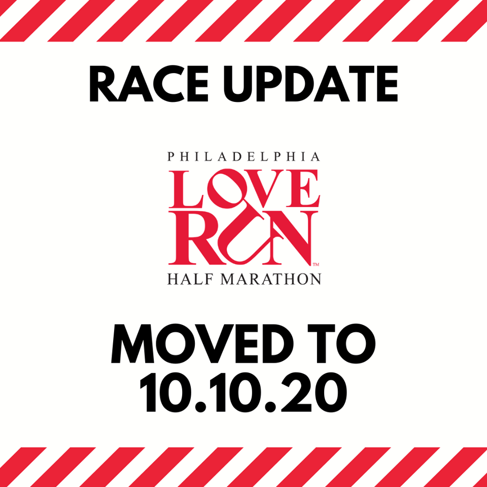 Due to the rapidly developing coronavirus (COVID-19) situation, the city of Philadelphia announced they are prohibiting public gatherings of over 1,000 attendees for at least the next 30 days, the Love Run, scheduled for Sunday, March 29 has BEEN MOVED TO October 10, 2020.