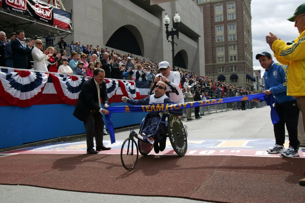 That encounter was a life changing moment for me. Until then, I measured my success in racing by the time on the clock or my placement in the standings. Until then, I took for granted the ability to step out my door anytime I wanted and set out on a run or a bike ride. I took for granted the simple act of crossing the finish line under my own power and hearing the shrill beep of the timing mat. There were many times I’d grimace and feel disappointment at the time on the clock as I crossed. But no more. Obviously any athlete wants to post a good result, but after my encounter with Dick & Rick Hoyt, I simply relish the ability to cross that line on my own two feet. There are thousands of people like Rick Hoyt who would happily give up the rest of their lives to simply walk across that line just once on their own. That will never happen for Rick and most others in his situation but thanks to his loving dad, he’s gotten to experience the thunderous, hair-raising cheers at finish lines the world over.