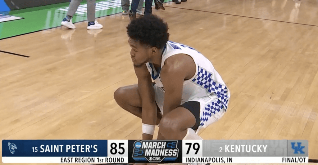 95.6% of brackets had Kentucky advancing in the first round. One wonders if they remaining 4.4% knew what they were doing or like the Saint Peter’s uniform colors or just the Peacock mascot?