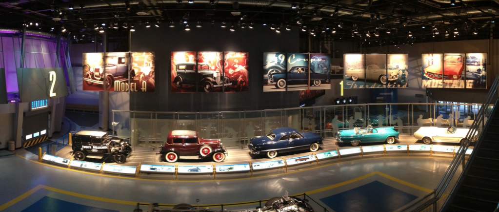 We completed the loop of the Rouge assembly floor. We checked out some of the awesome examples of cars produced there over the last 100 years in the lobby. We then boarded the bus back to the museum to explore there.