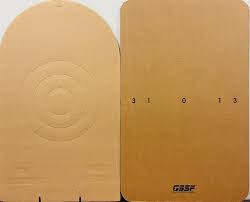 Glock M is fairly simple with 4 cardboard GSSF targets and one steel popper style target. The GSSF targets are scored similarly to Five to Glock and the steel plate just needs to be hit once. The shooter can shoot as many times as he or she wishes at the steel.