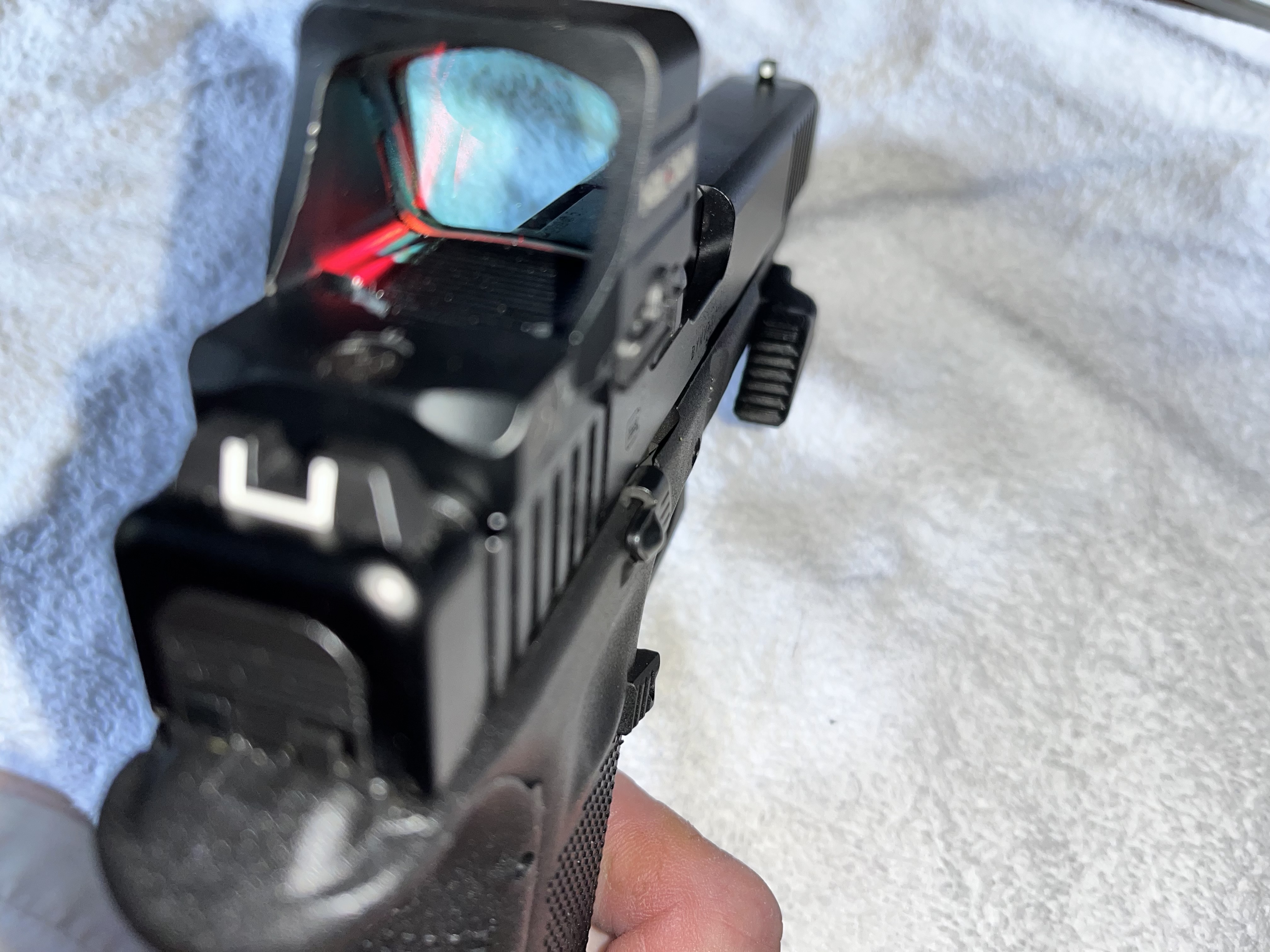 I loaded a round from my Barney magazine* and inserted a fresh 10 rounder. “Shooter ready?” BEEP! BANG! CLANG! BANG! CLANG! I aimed with deadly precision focusing that bright red dot on the bottom middle of each target. (My 17 shoot a couple inches high.) “Take that you stupid plates! And that! And that!” BANG! CLANG! BANG! CLANG!